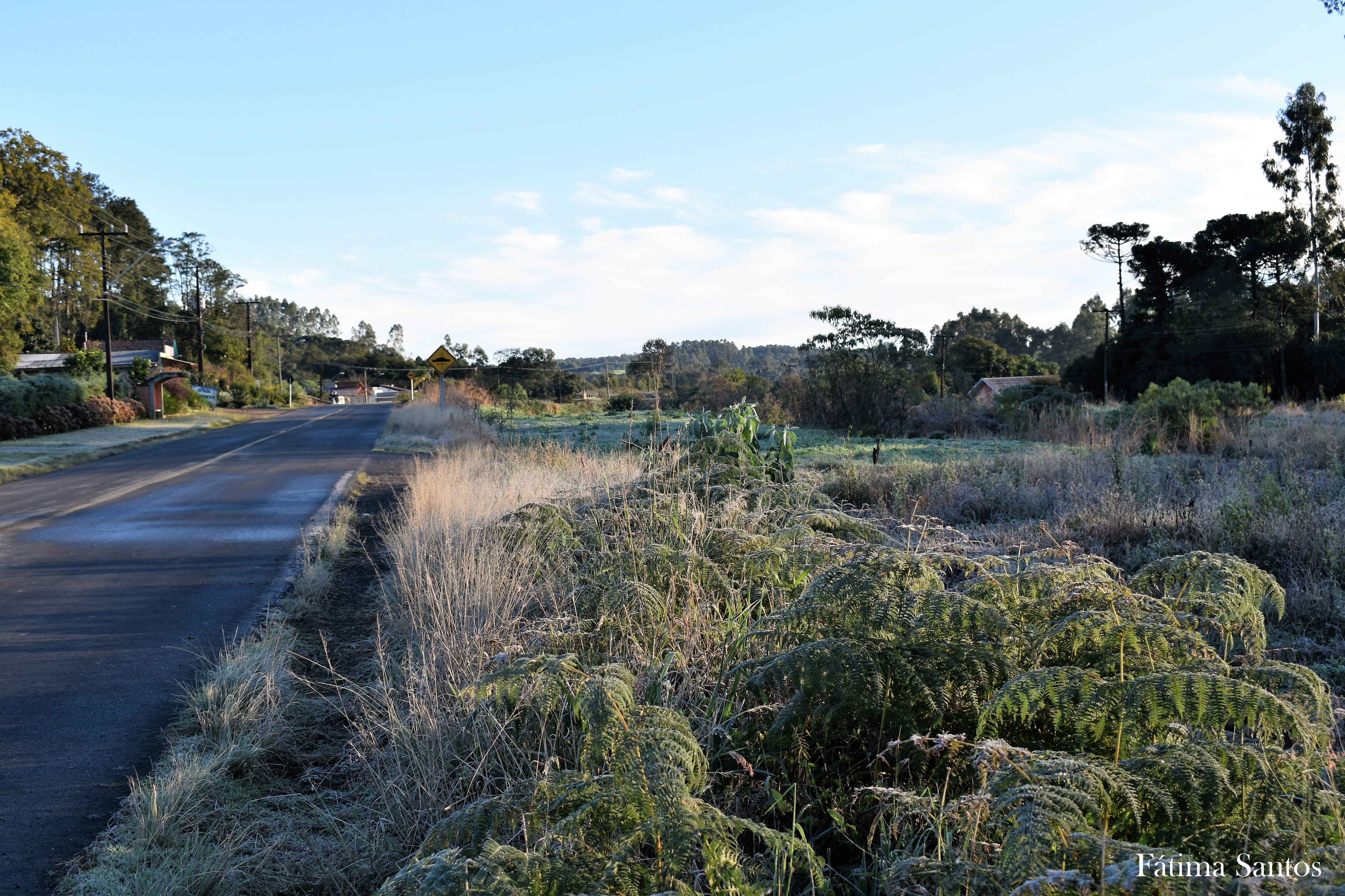 Distrito de Marcílio Dias registrou a menor temperatura do ano no amanhecer desta terça-feira quando chegou a -1º C. As paisagens amanheceram cobertas de geada.